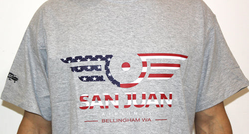 Bellingham Flag San Juan Airlines Logo T-Shirt in Heather Blue